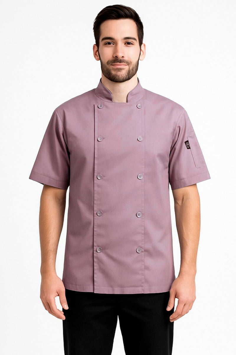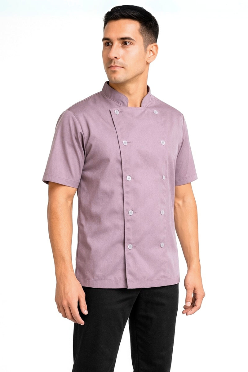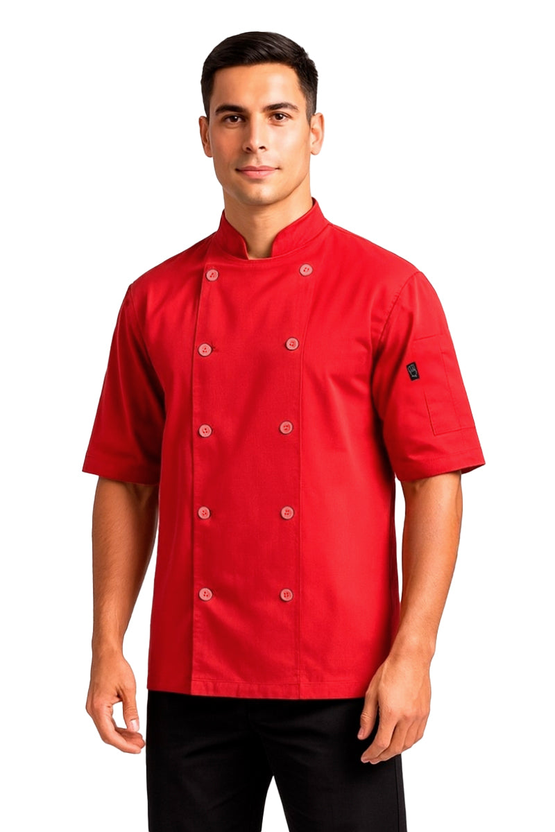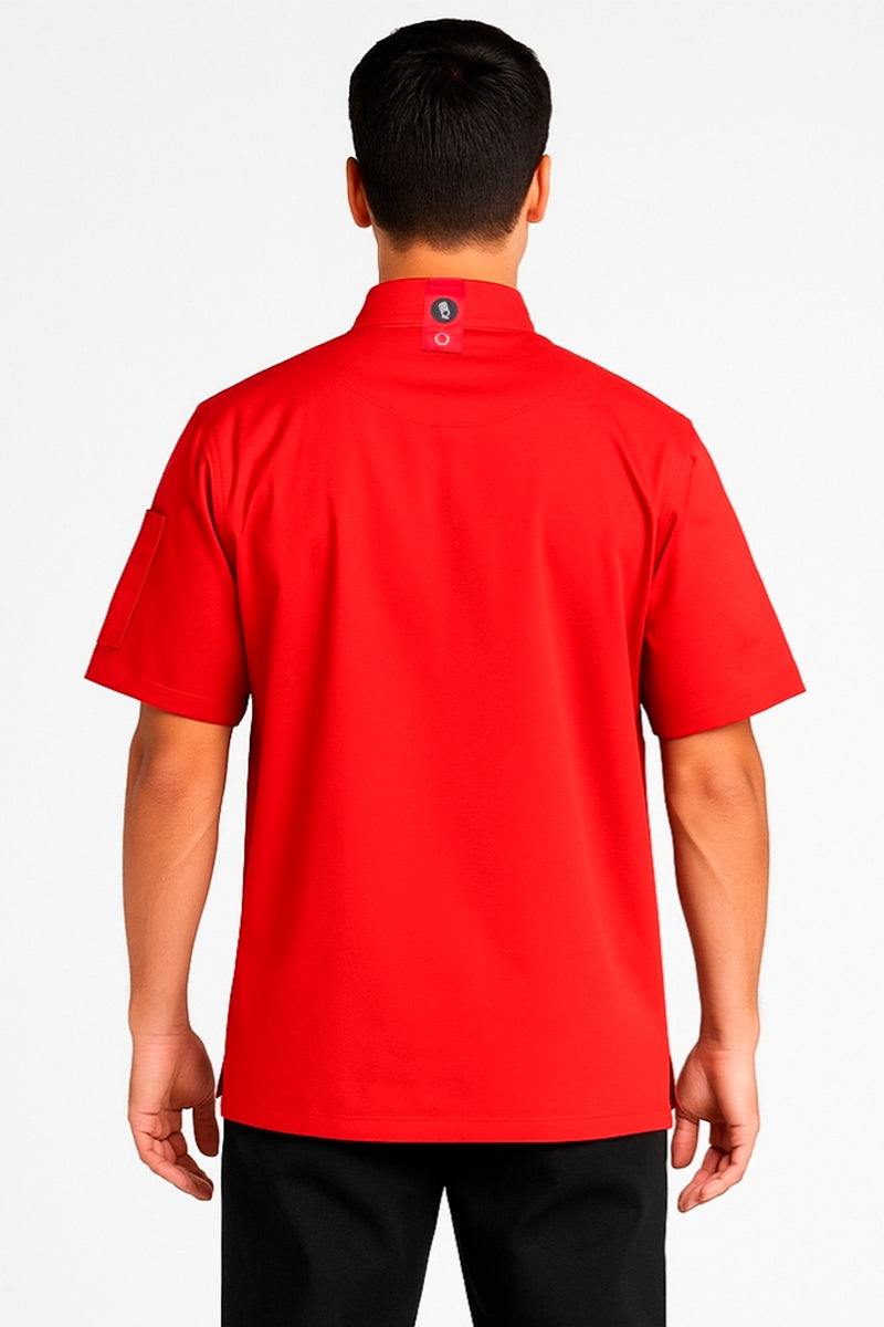 Diseño clásico y funcional, ideal para el día en cocina o servicio. Confeccionada en tela ligera de alta durabilidad, cuenta con botones transparentes al frente que aporta un toque limpio y elegante. Su corte de dama y caballero con manga corta brindan comodidad y frescura durante largas jornadas.