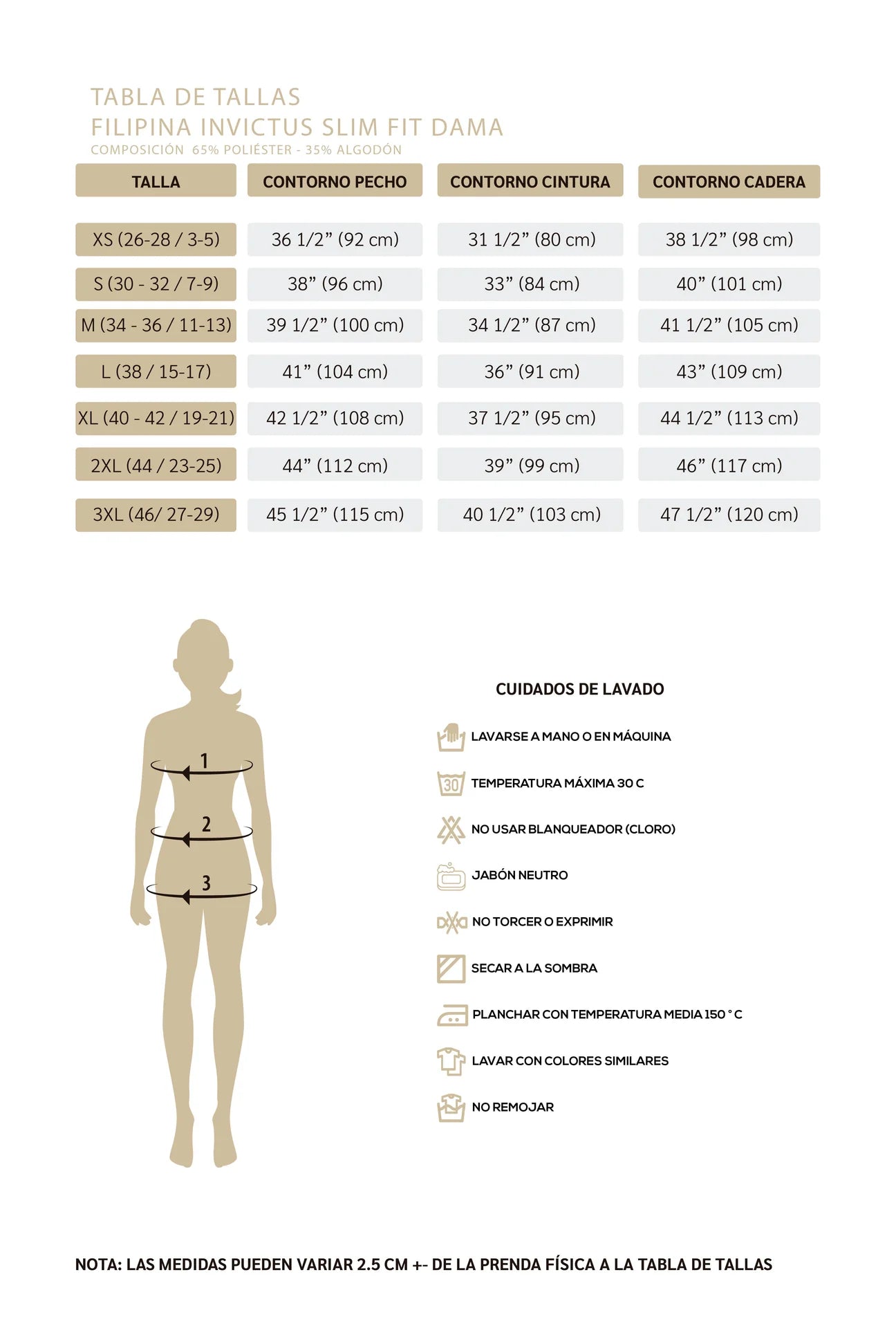 Para filipinas y pantalones Permachef: Ver tabla de tallas